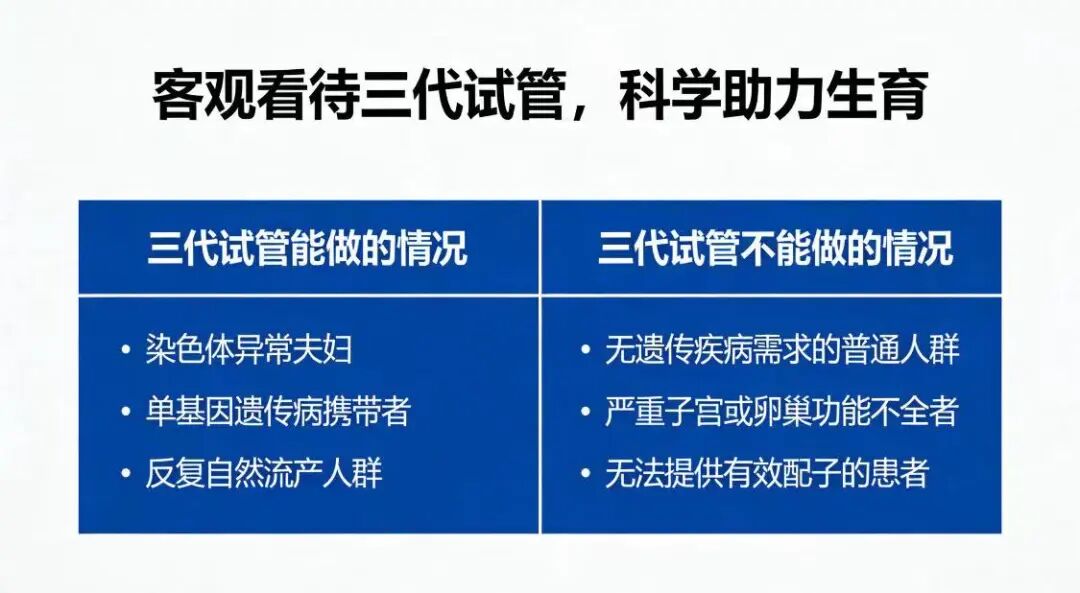 不少夫妻多次移植优质胚胎却失败,根源可能是胚胎存在隐性染色体/基因异常。三代试管的全面筛查能精准定位问题,避免后续无效移植,帮家庭节省时间与经济成本。⚠️ 科学边界:三代试管不是“万能神药”,这些问题它解决不了